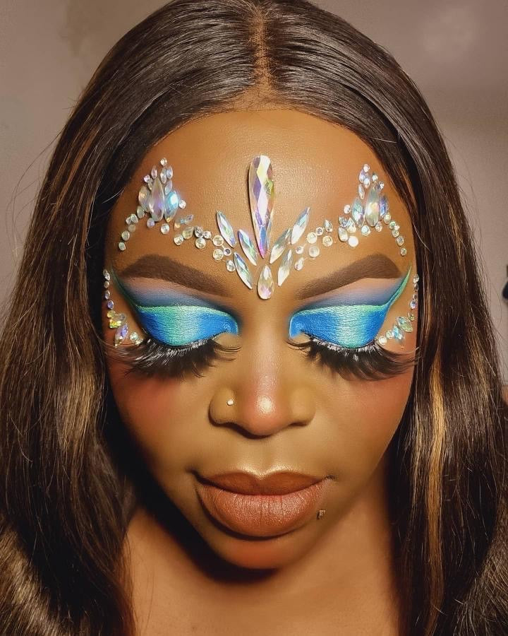 Self Adhesive Body Jewel: Gems with a silver monochrome look. This number differs from the rest covering the forehead from left to right.Â