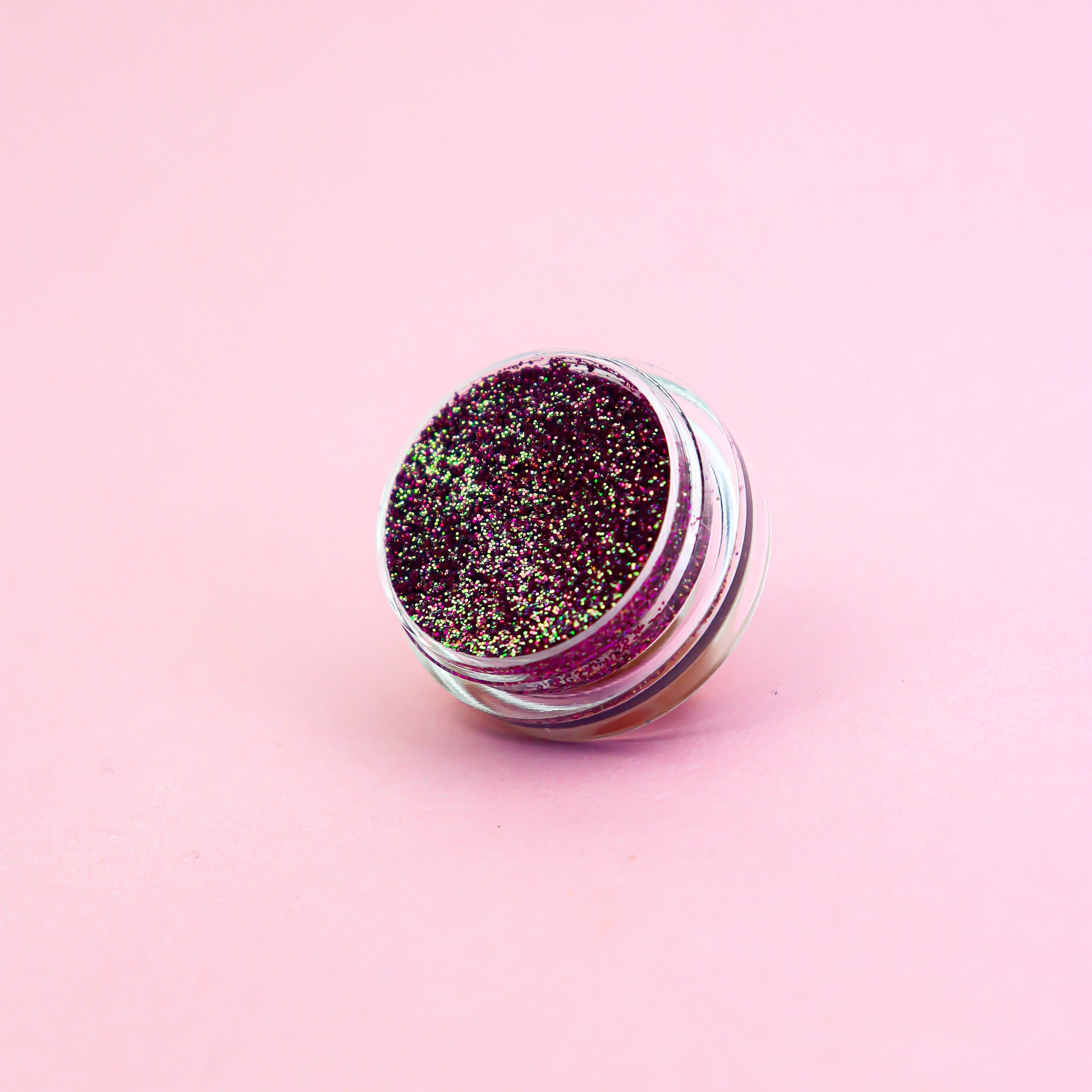 PNAYARD- is a hot pink glitter with a slight adhesive base. Suitable for the eyes and face to create a fun glitter pattern and look.